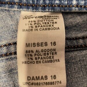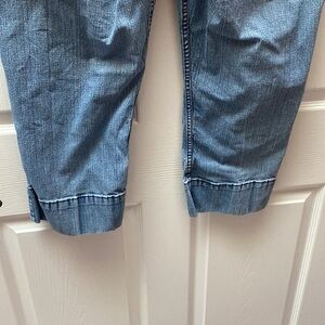 O womens Levi Strauss stretch solid blue denim capri dungarees size 16