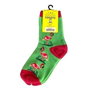 Foozys Kids Crew Socks: Flamingo; Green/Pink; Kids 5-10 yrs