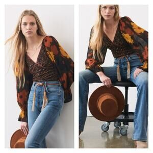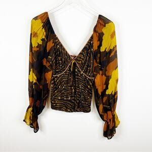 Anthropologie Conditions Apply Abstract Long Puff Sleeve Top XS