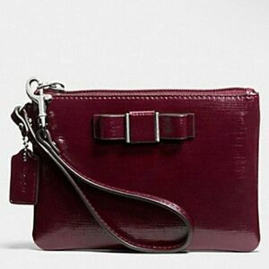 Coach Darcy Bow Burgundy Patent Leather Wristlet