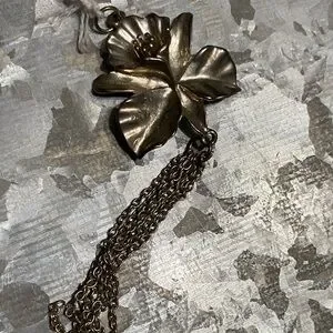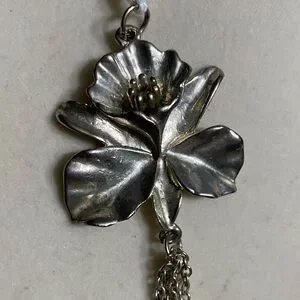 This elegant silver floral pendant necklace adds a touch of sophistication to any outfit. The intricate flower design and delicate chain tassels make it a standout piece.