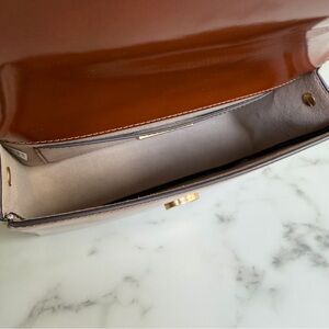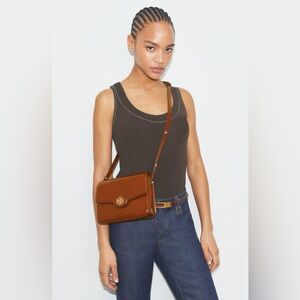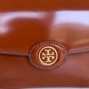 Tory Burch Robinson Spazzolato Leather Shoulder Bag Dark Sienna Brown Patent