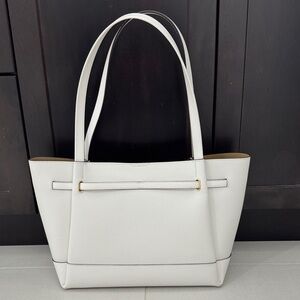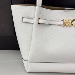 Michael Kors Reed Large Leather Belted Tote Shoulder Purse Bag - Optic White