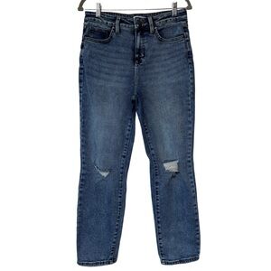 {Lauren Conrad} "Straight" High Rise Distressed Knee Stretch Denim Jeans
