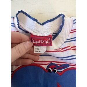 Vintage 80s Royal Knight Boys Short Sleeve Striped T Shirt Hippo Appliqué