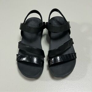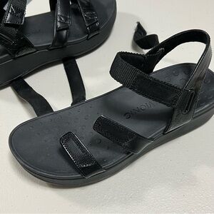Vionic's Misty is a great functional platform sandal with two velcro straps on the vamp, and another velcro strap around the ankle for a personalized fit. The biomechanical footbed was designed by a podiatrist to ensure you get unparalleled comfort with each step.