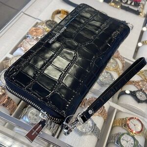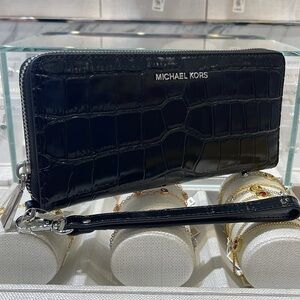 Michael Kors Jet Set Travel Metallic Crocodile Embossed Leather Continental Wallet