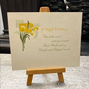 Charming vintage Easter card featuring yellow flowers and a heartfelt message. Perfect for collectors or as a thoughtful gift. I love reading the messages on these cards…it’s like a window to the past! Message is in pencil. Some age discoloration on back. Card approximately 4.5”l x 3 3/8”h. This is a firm priced listing. I do however offer a custom discount offer on bundles of 2or more listings. For standard shipping fee to apply, entire package must weigh less than 5 lbs.