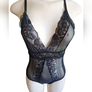 Black Sheer Lace Bodysuit Lingerie, Size Medium