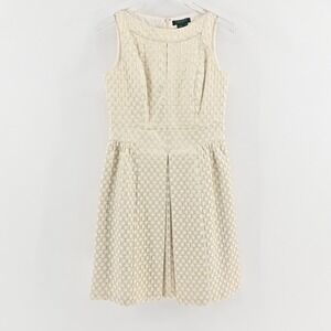 Ralph Lauren Metallic Pleated Dress Size 6 Gold Fit Flare Sleeveless Party LRL