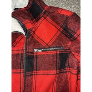 Some signs of wear on the Sherpa cuffs. Included in pictures. Lots of life left in this adorable jacket. This Women's Maurice's Red and Black Plaid Zip Up Jacket with Pockets in size XS is a stylish and versatile addition to any wardrobe. Made from a blend of polyester, wool, and other materials, this jacket features a classic plaid pattern and a collared neckline for a trendy look. With its convenient pockets and zip closure, this jacket is both practical and fashionable, making it perfect for everyday wear or special occasions. Suitable for women who appreciate quality and style, this basic jacket from Maurices is a must-have for the fashion-forward individual.