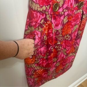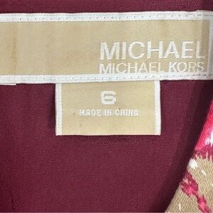 Michael Kors Floral Sleeveless Dress Red Pink Wine Gold Metal Buttons Sheath