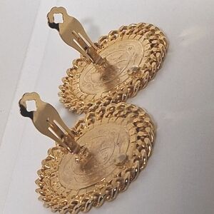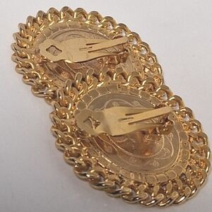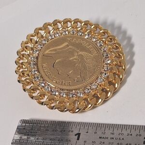 * Vintage Napoleon Coin & Rhinestones Gold Tone Clip On Earrings