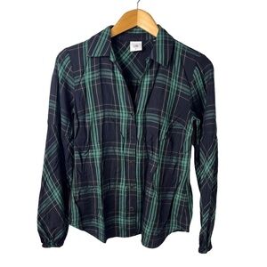 CAbi Green and Black Plaid Big Sur Long Sleeve Top