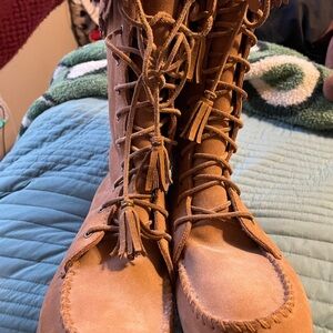 Like New Condition L.L. Bean Suede Leather Tan Tassel Thick Sheepskin Lined Boots Size 9 Medium Boho
