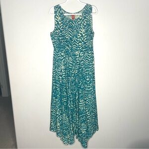 Sundance Blue Waves Sundress 14 Sleeveless Keyhole Neckline Handkerchief Hem