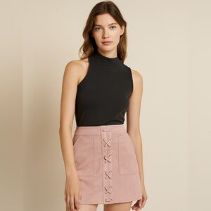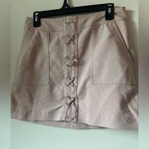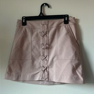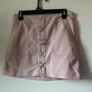 Express Blush Pink Faux Mini Skirt with Lace-Up Front – Size 6
