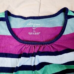 Land's End Long Sleeve Striped Dress Girl's Small S 7-8 Pockets Round Neck EUC