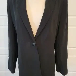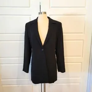 JOSEPHINE CHAUS VINTAGE BLACK LONG BLAZER ONE BUTTON SIZE 10 CIRCA 80'S