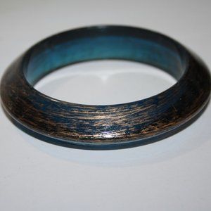 This is a beautiful chunky blue and gold bangle bracelet. The bracelet fits my 7" great. it's on the looser end. It's 2 7/8" wide across and .75" tall.