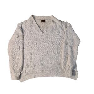 You will love this classic sweater that has a popcorn texture making it very soft, fun and cozy. It is designed with a relaxed oversized fit. Features a V-neckline, a knitted weaved band detail on the high low hem and long banded sleeves. This sweater that can be worn casually with jeans or a night out vibe with skirts