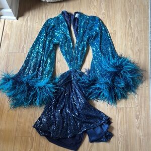Stunning teal dress with sequins and feathered sleeves. Perfect for a glamorous night out. Feathers kinda fall off so be careful
