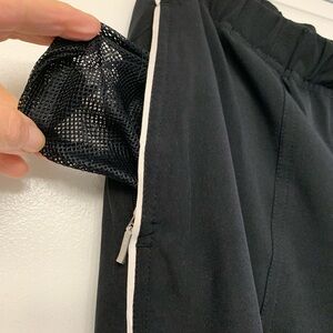 LUCY Black Pants w White side stripes pockets Large great travel sport slimming!