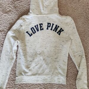 Victoria's Secret Pink Perfect Full Zip Hoodie Oatmeal Navy Blue Size XSmall