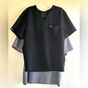 Black & charcoal gray Technical Collection uniform scrub tops by Figs. Soft fabric. Ideal for healthcare professionals. Sz XXL Excellent Condition!