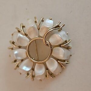 Vintage STAR Brand Goldtone & White Pearlized 4 Piece Jewelry Set. The goldtone and white pearlized acrylic are complete and in great condition for their age. All the pieces are stamped Star (earrings Star is very faint, but there).This exquisite jewelry set features a stunning combination of gold and pearl tones. I believe they are from the 60s or 70s.