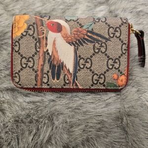 Gucci GG Supreme Tian Print Zip Around Card Case Wallet