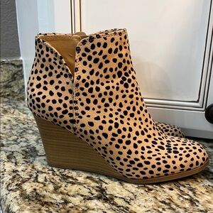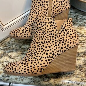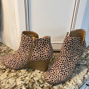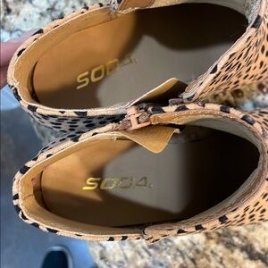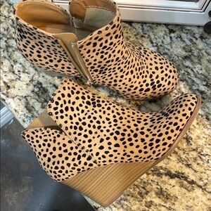 Step out in style with these chic leopard print ankle boots. Perfect for adding a bold touch to any outfit.