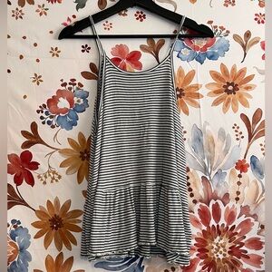 American Eagle Soft Sexy M Tank Extra Slim Ecru Black Striped Ruffle Preppy Rib