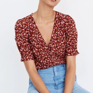 Madewell Silk Button-Sleeve Top in Spring Prairie | Spring Floral Rusted | sz 4