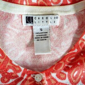Carole Little Orange White Print Cotton Cardigan