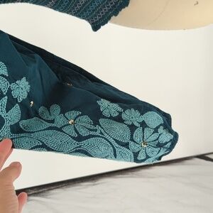 By Anthropologie Smock Balloon Sleeve Top Turquoise XS bohemian boho chic