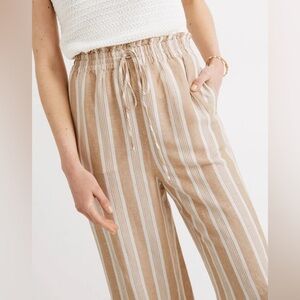 Madewell Women’s Smocked Huston Pull-On Crop Pants in Brown Stripe - Small