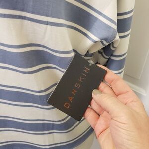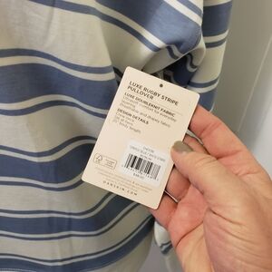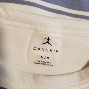 NWT Danskin Luxe Rugby Stripe Pullover Tempest Blue/White Size Medium Ret. $48