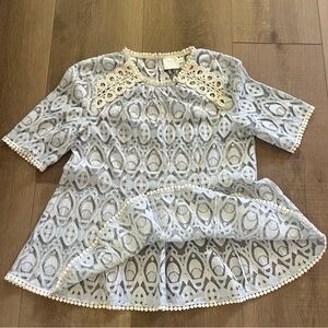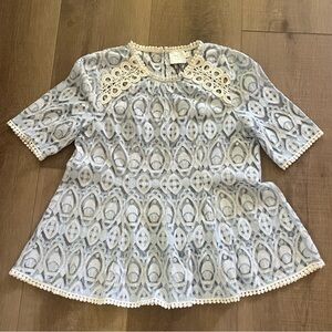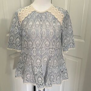 HD in Paris Anthropologie Blue Sheer Lace Top SZ XS A-Line Fairy Whimsical 34”