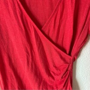This elegant red blouse from Banana Republic features a sophisticated wrap design with long sleeves, perfect for versatile styling. The soft, draped fabric creates a flattering silhouette, making it an ideal choice for both casual and formal occasions.