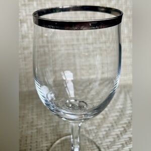 Discontinued/Rare set of 2 Wedding Ring Wine Glasses by Johann Haviland Bavaria Germany. Manufactured in the 1960s. These elegant and vintage wine glasses are used for weddings or every day use. Beautiful blown glass. H: 6 1/2”. W: 2 3/8”. Platinum or silver-colored trim is a little worn.