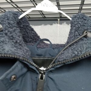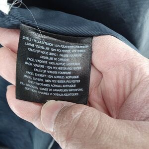Sam Edelman Coat Womens Medium Navy Blue Mid Length Down Parka Jacket Fur Hood