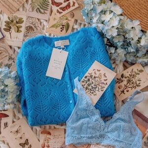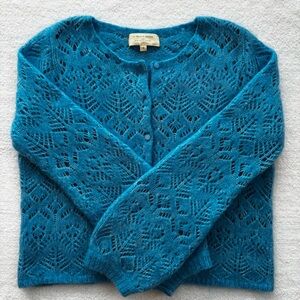 Sezane Olympe Blue Azur Mohair Wool Pointelle Cardigan/Jumper - Size S