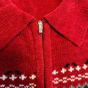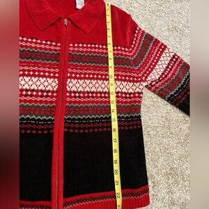 Embrace warmth and style with this cozy red patterned Croft & Borrow cardigan. Perfect for layering in cooler weather. Fabric is 100% acrylic and very soft. Maybe considered chenille?