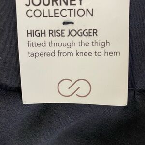 NWT Calia by Carrie Underwood Journey Collection high rise higher size small. These are fitted thru the thigh and tapered from the knee to the hem. The bottom hem is a raw hem. These black pants have two functional pockets and feature an elastic waist with an adjustable draw string. Material is very soft and is a modal blend material.