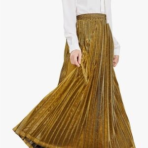 Metallic Gold Pleated Maxi Skirt