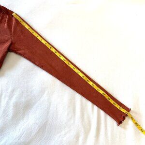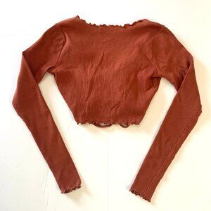 Forever 21 Ribbed Ruched Crop Top. Women Long Sleeves V-Neck Burnt Orange Size S