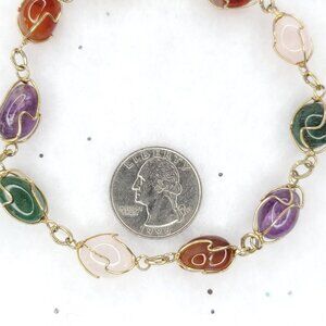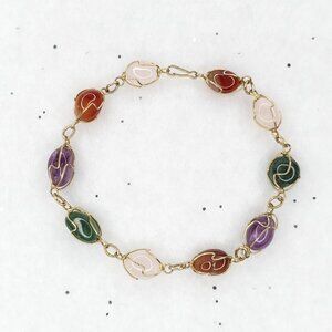 Vintage Wire Wrapped Bracelet Semi Precious Gemstones Quartz Agate Amethyst