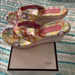 Vibrant Coach heels with a lively pattern. Perfect for adding flair.. Preowned , still plenty of life in them, original box size 6