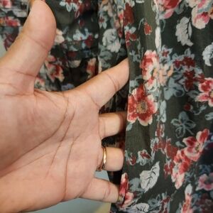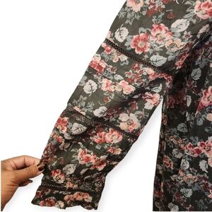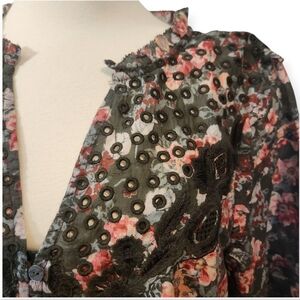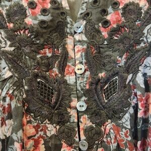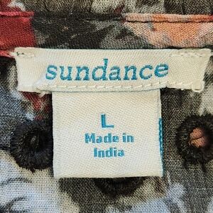 The Sundance Andi Floral Dress is a stylish and versatile piece perfect for a variety of occasions. This bohemian-inspired dress features intricate floral embroidery in shades of olive, pink, and caviar, adding a touch of whimsy to the design. With a flattering v-neckline and 3/4 sleeves, this short dress is made from comfortable cotton material and has a button closure. Ideal for travel, parties, or casual outings, this L size dress embodies a Western, flower-themed style that is sure to make a statement in any season. Has detachable under slip.
